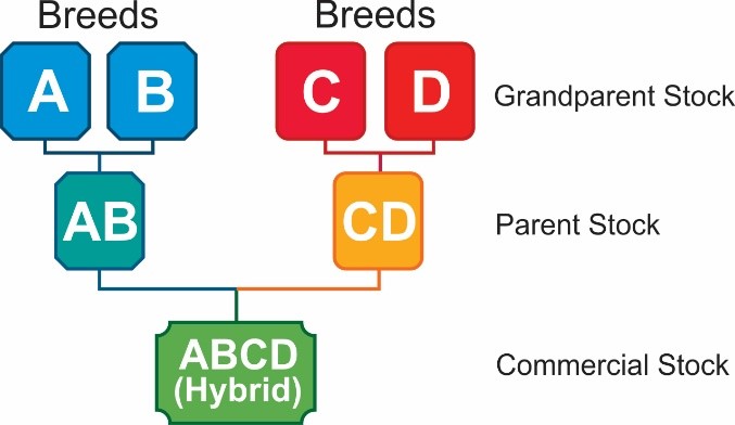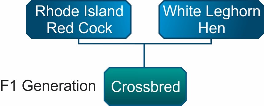 Cross breeding is carried out with all farm stock, and poultry are no exception. In fact, the vast majority of commercial poultry stock in the developed countries are cross breeds, or hybrids. A hybrid is obtained by crossing two pure breeds and the result of this mating will be a crossbred, or hybrid, and this is called the F1 generation.