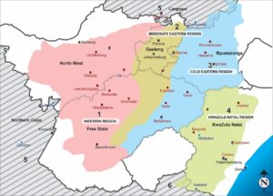 Figure 1:Â Maize production regions of South Africa