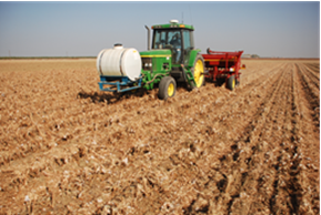 Fertilizer should not be placed too close to the seed row to avoid burning of the primary roots.