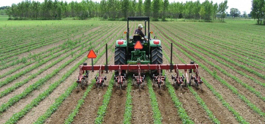 Cultivation close to the plant row should be avoided so as not to disturb the young root growth, thereby stressing the plant.